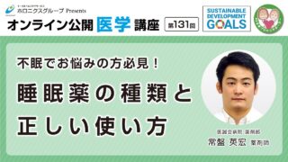 【第131回】不眠でお悩みの方必見!睡眠薬の種類と正しい使い方 昨今、不眠に悩む方の割合は増えてきており、ぐっすり眠るために睡眠薬を使っている方も多くいらっしゃるのではないでしょうか?自分にあった睡眠薬を正しく使い、睡眠...